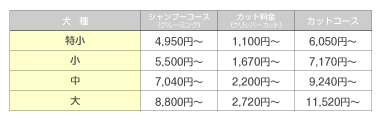 ※ミックス犬に関しましては、大きさの近い犬種の料金になります。